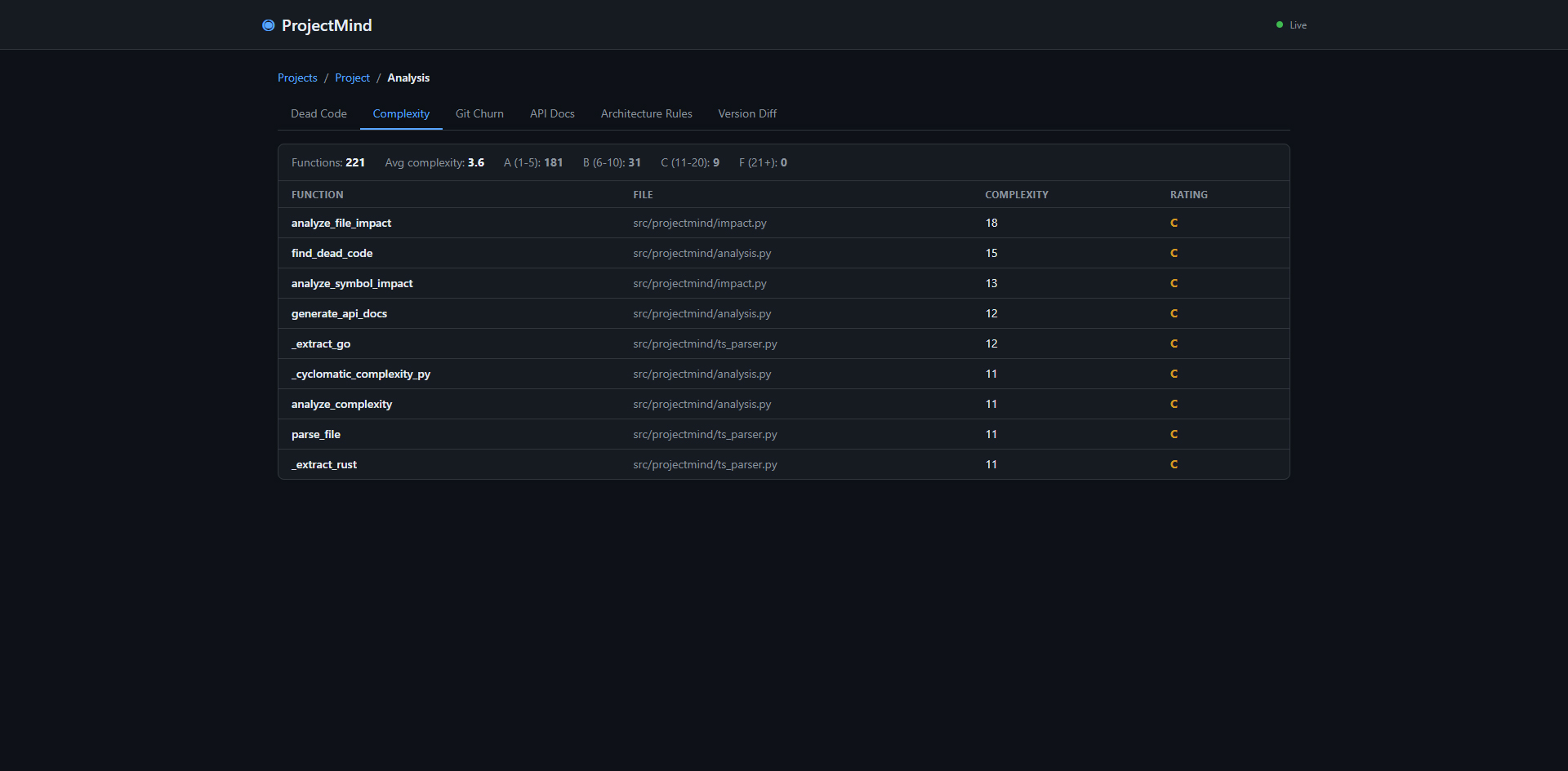 Tech Stack: Python, SQLite (WAL), tree-sitter, FastMCP, Starlette, watchdog, AST-Modul