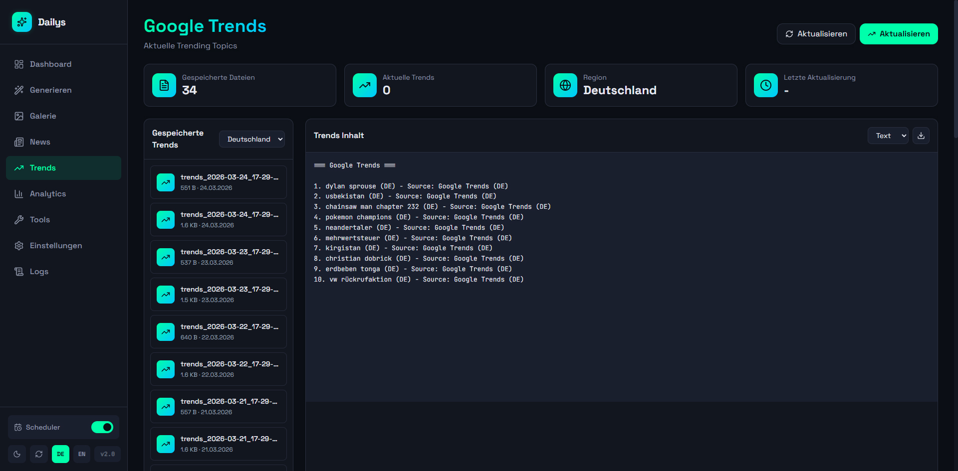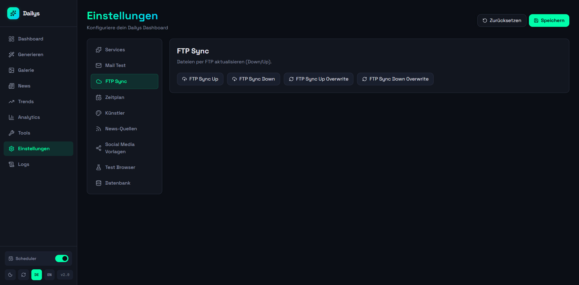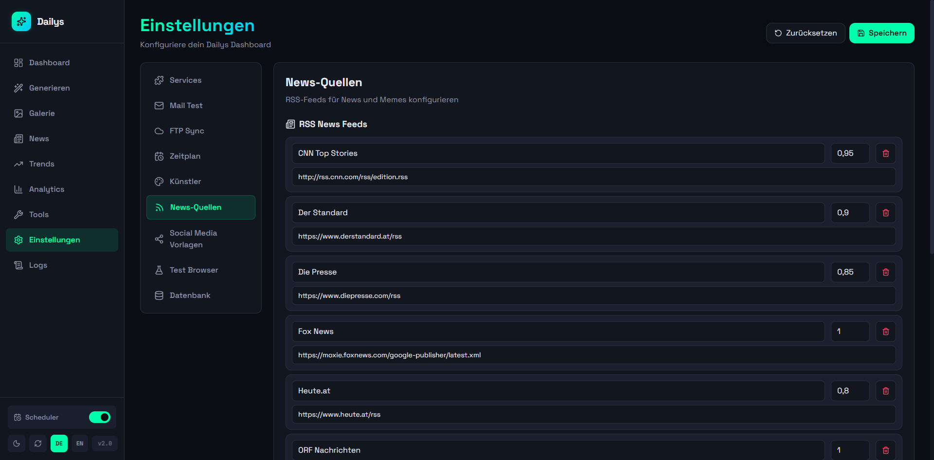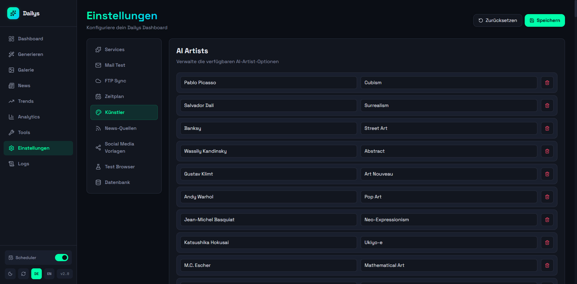 A web dashboard for automated generation and management of Dailys NFTs. Aggregates news from 12+ RSS sources and Google Trends, generates AI prompts (OpenAI), creates images via Midjourney/Discord, and automatically publishes to WordPress, Twitter, Instagram, and Facebook (via Buffer API). Controllable via web UI and Telegram bot with scheduler for daily automatic generation, 140+ artist styles, and multi-site support.