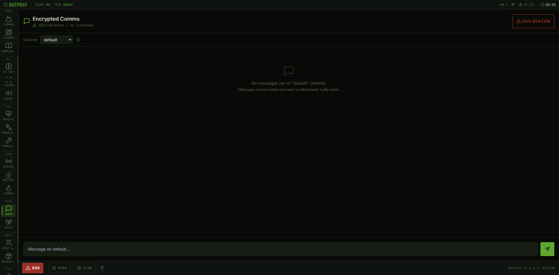 A survival system (including AI) that works without internet — for field operations where there is no connectivity.