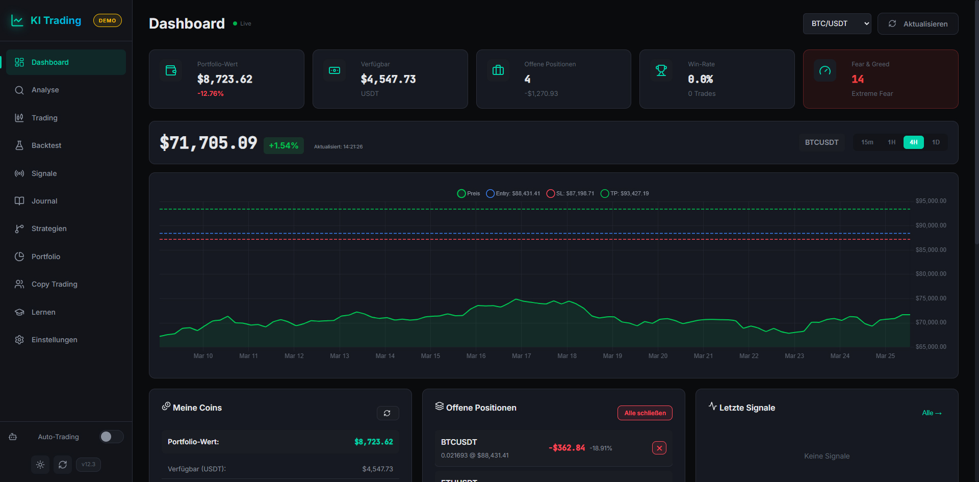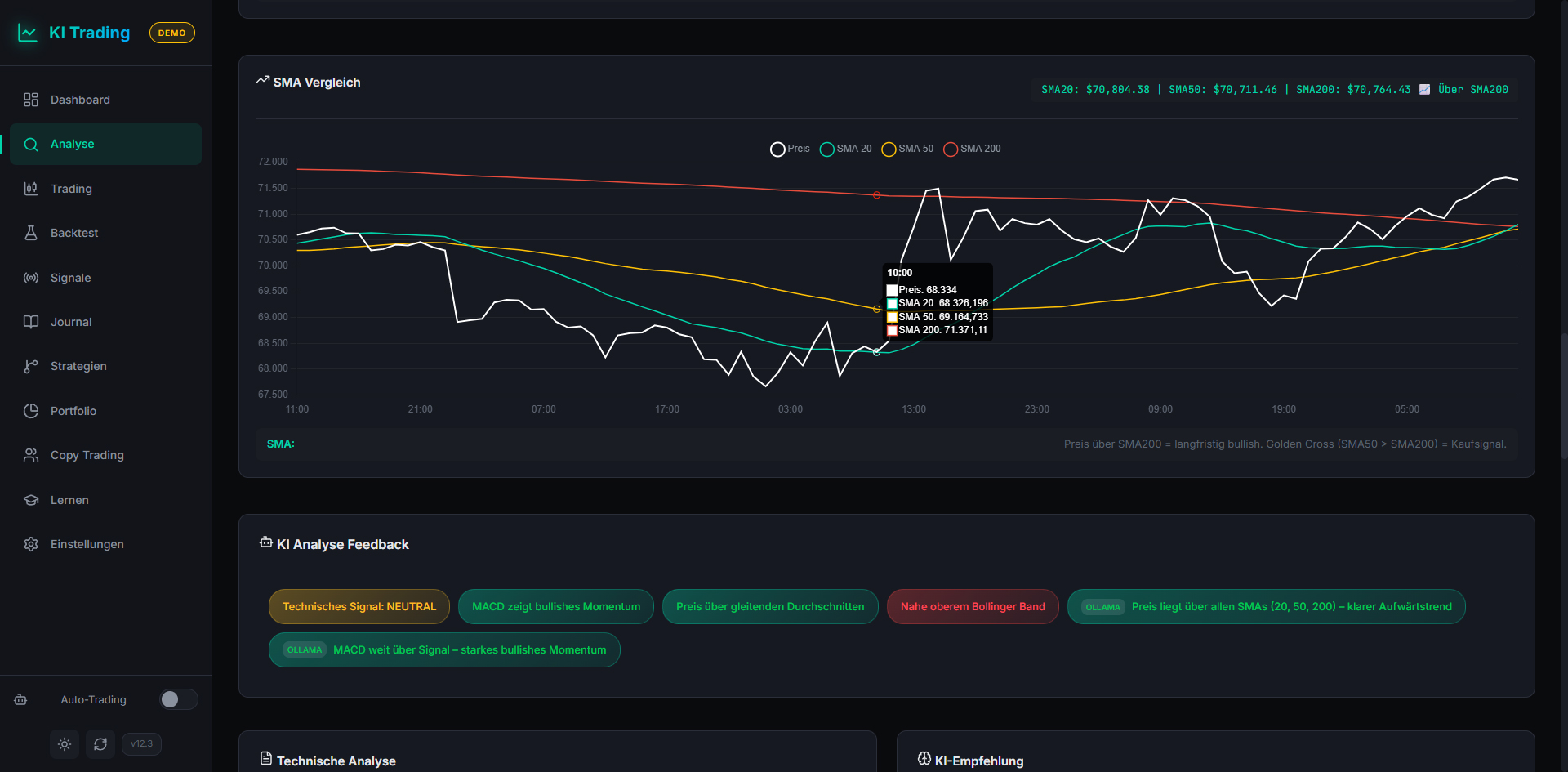 Tech Stack: Python, Flask, SQLAlchemy, SQLite, Binance API, OpenAI/Claude/Ollama, Telegram Bot API, HTML/CSS/JS