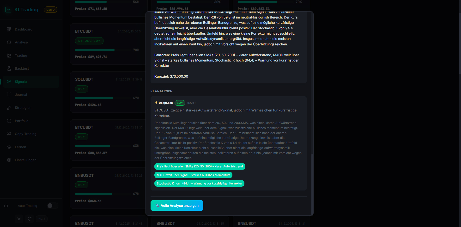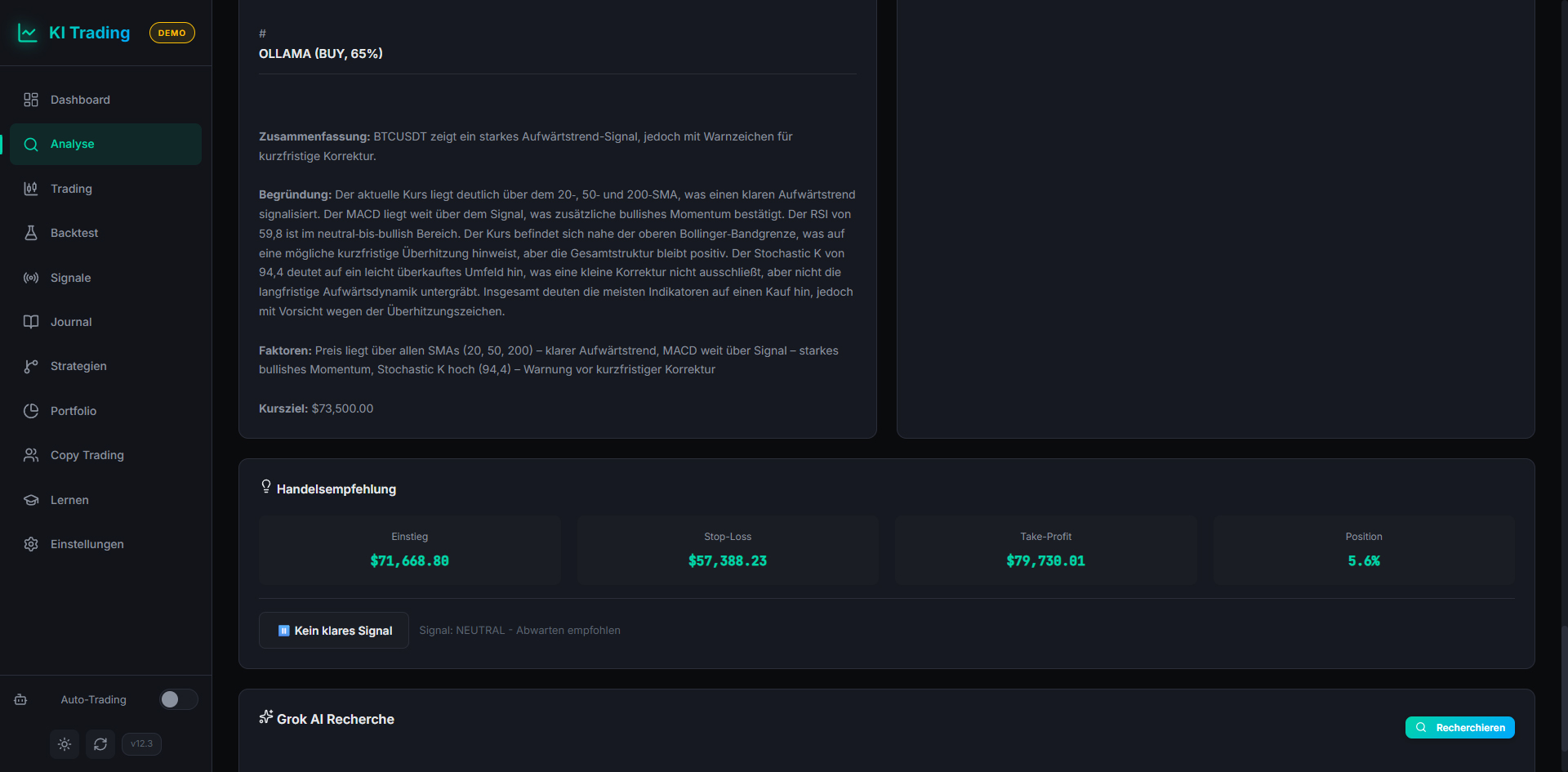 Crypto markets operate 24/7 with extreme volatility. Manual market observation and trading decisions are time-consuming, emotionally stressful, and error-prone. Existing trading bots are based on rigid rule sets without contextual market analysis. The integration of modern LLMs for qualitative market assessment into the trading process is largely missing.